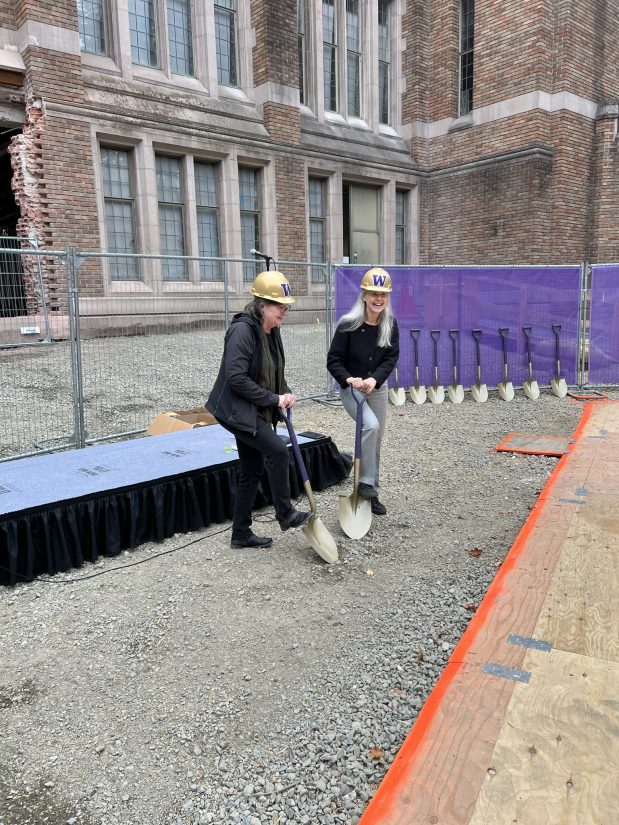 We kicked off the festivities with a few words from Dean Maya Tolstoy and SEFS’ Acting Director Clare Ryan. They donned hard hats and wielded golden shovels in honor of Anderson Hall’s “groundbreaking” – the building is currently undergoing renovation efforts to bring the historic building up to code, make it ADA accessible and introduce new and much needed technological advances.