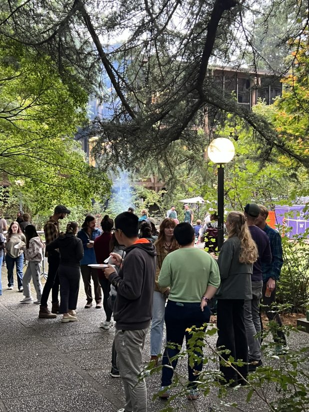 SEFS students, faculty, alumni and friends gathered in the Anderson Hall courtyard in early October for the annual and much anticipated salmon BBQ. There were many familiar faces in the crowd and some new ones too – SEFS welcomed three new faculty members to its cohort this fall – Julie Larson, Gaj Sivandran and Mutian Hua. We also greeted many members of the UW Farm team who biked up from the Center for Urban Horticulture to join us for the evening.