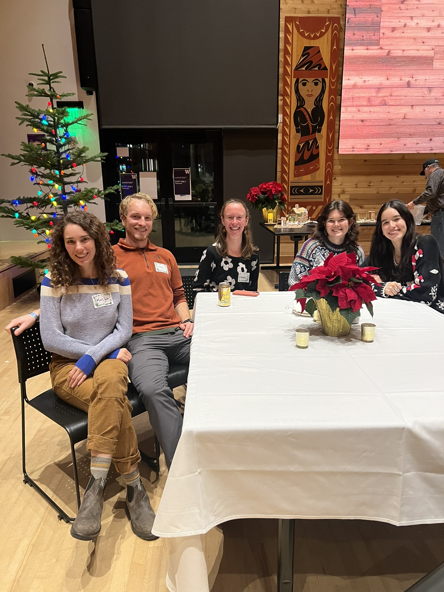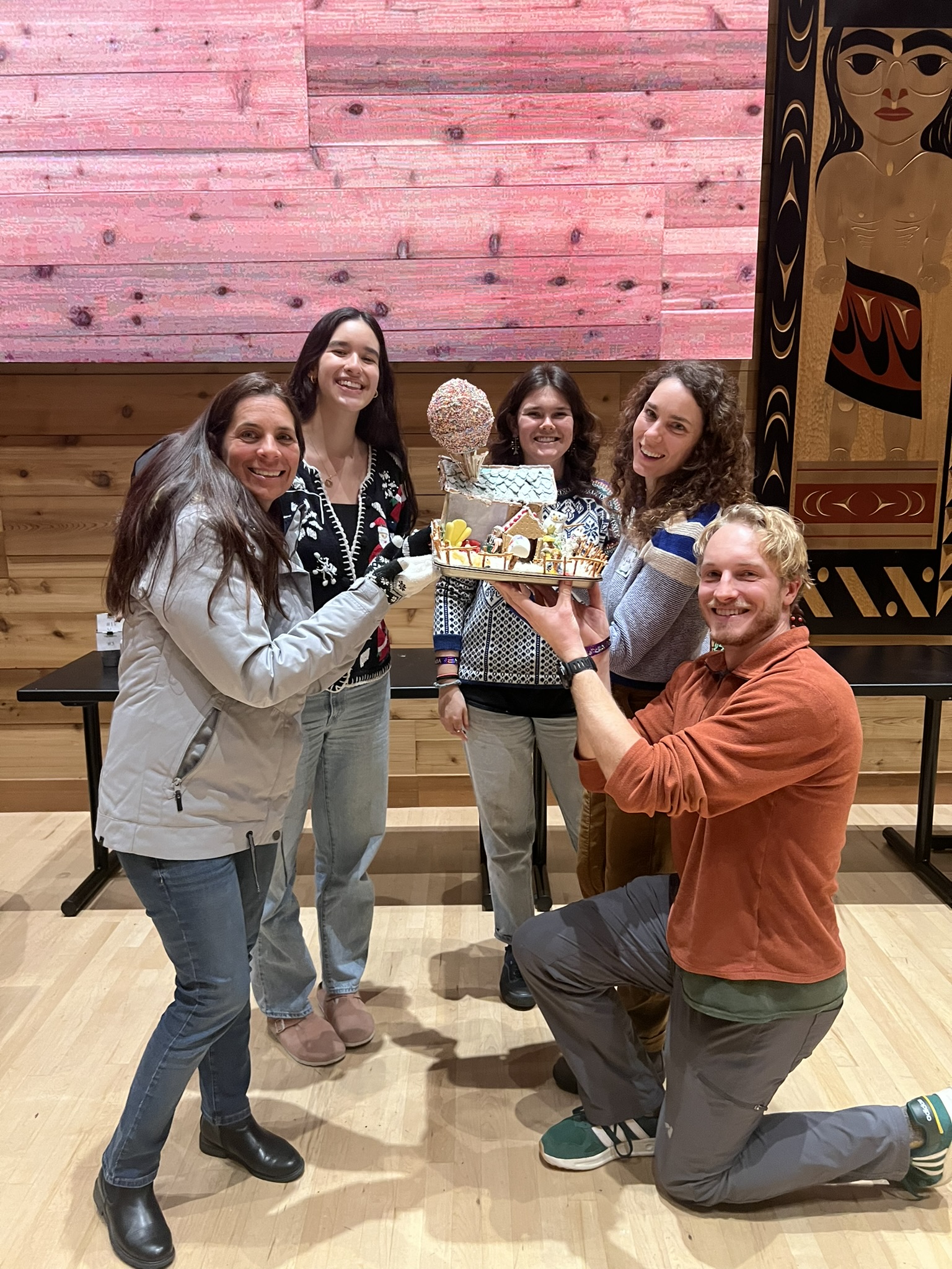 As Anderson Hall renovation efforts are still underway we celebrated our annual SEFS holiday party at the wǝɫǝbʔaltxʷ (UW Intellectual House). For the third year, students, staff and faculty participated in a gingerbread “creation” competition. Congratulations to the Quantitative Ecology Lab for taking home the grand prize!